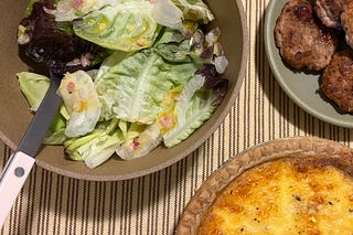 What to serve when you're snowed in: ham and Gruyère quiche, homemade turkey sausage, and a simple salad.