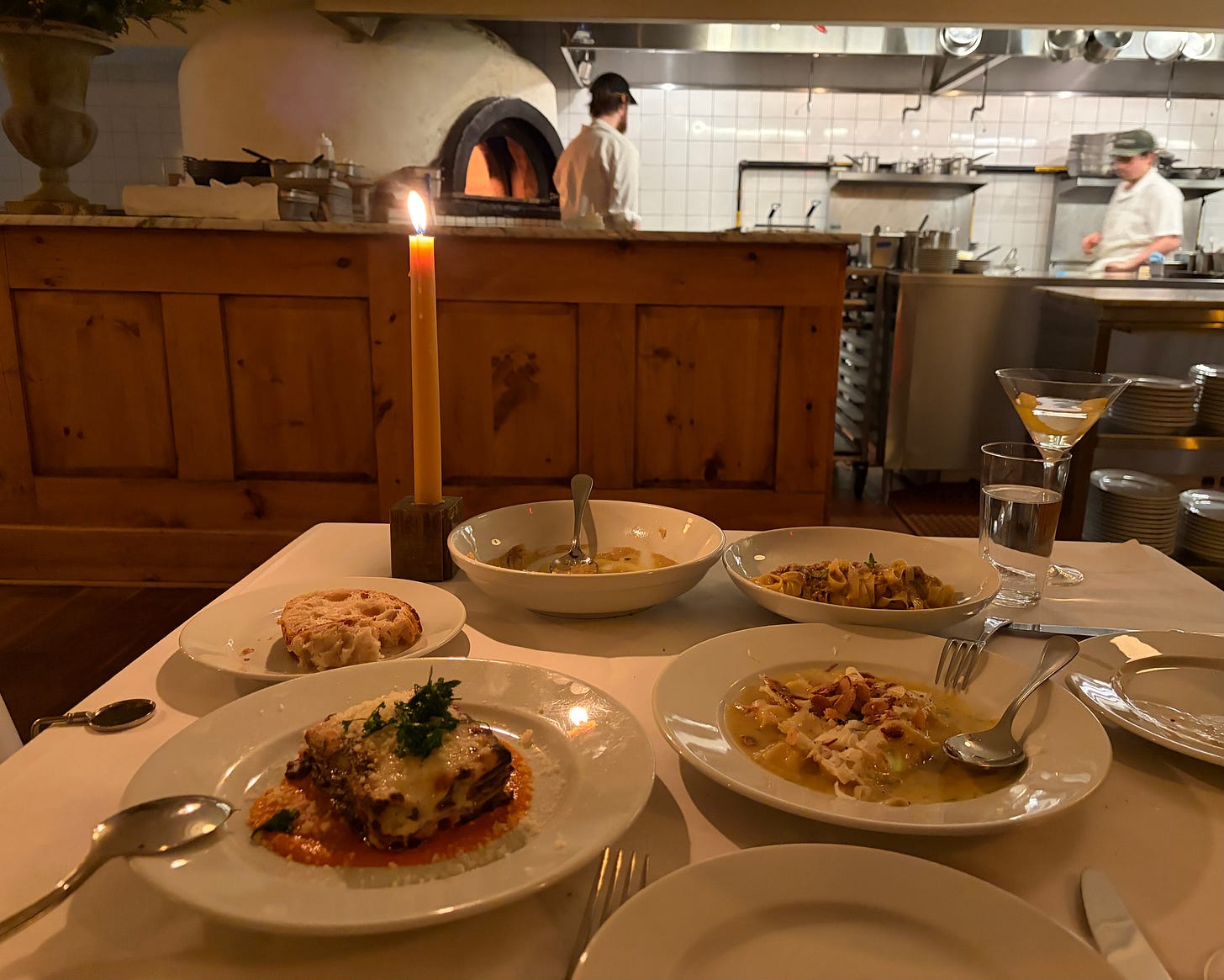 We opted to get three pastas instead of an entree (a “pasta party” as our server called it). The fettuccine with Guinea hen ragu was the closest dish I have had to the pasta at Chez Panisse. Extremely thin pasta, light sauce, subtle with a depth of flavor. The squash ravioli was an unexpected hit for me; their small size felt like wrapped candy that bursts in your mouth when bitten into. The lasagna with wild boar was good but paled in comparison to my Sunday favorite of similar profile at Il Posto.