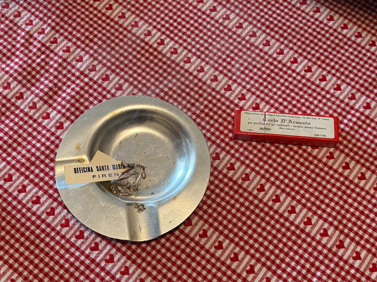 After dinner, I lit Santa Maria Novella’s incense papers that smell amazing and come in a red case.