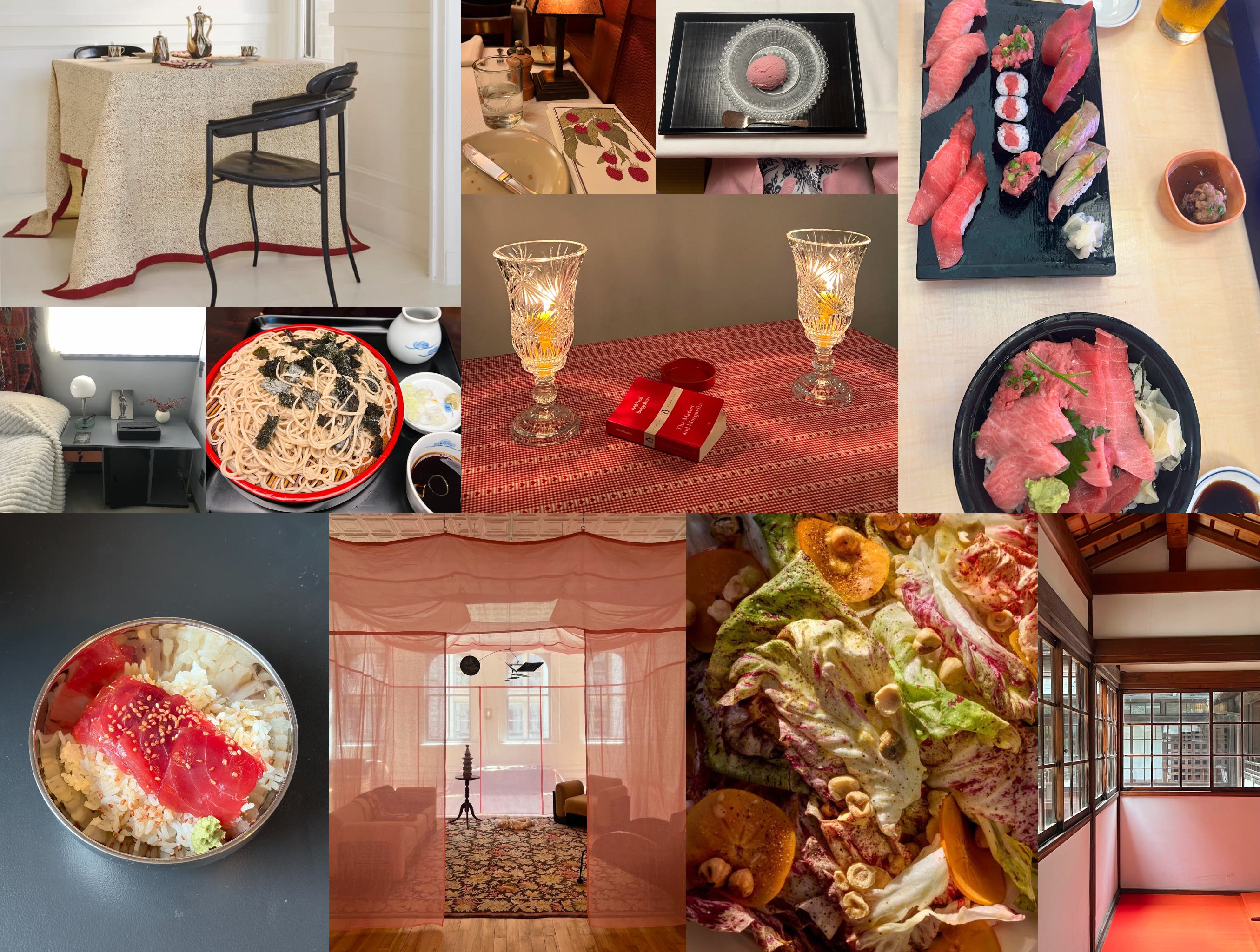 The shades of pink tuna from a late night dinner we had in Tokyo (see mood board, top right) live permanently in my brain. I decided to run with it as a theme, and on Saturday I headed over to Osakana and purchased a half pound of tuna, opting for the lean Akami.